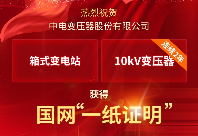 捷报频传 | 中电变压器再获国网“一纸证明”!